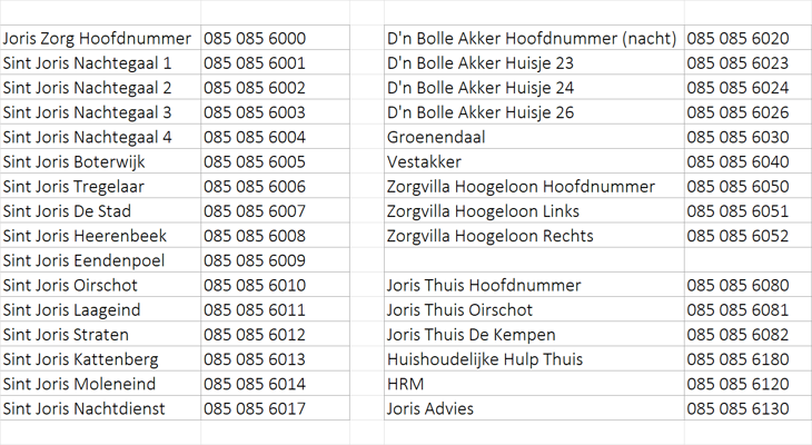 LET OP: Op dinsdag 3 maart 2026 is Joris Zorg overgeschakeld op een nieuwe inrichting van het telefoniesysteem. |